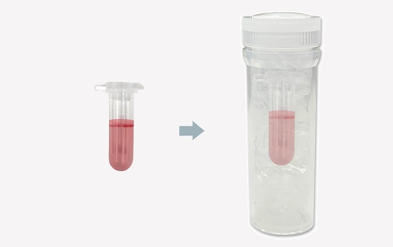 12 ロートを外して採血管のキャップを締め、梱包容器に入れます。